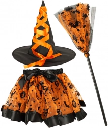 Tutto ciò di cui una piccola strega ha bisogno: cappello a punta, gonna tutu vaporosa e scopa stilosa in design coordinato.