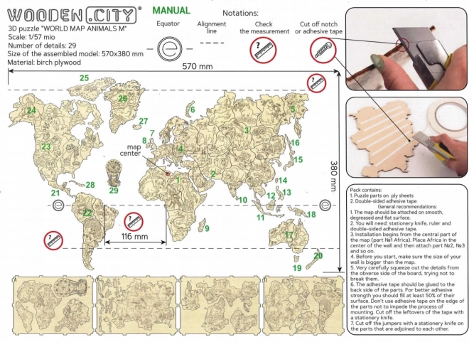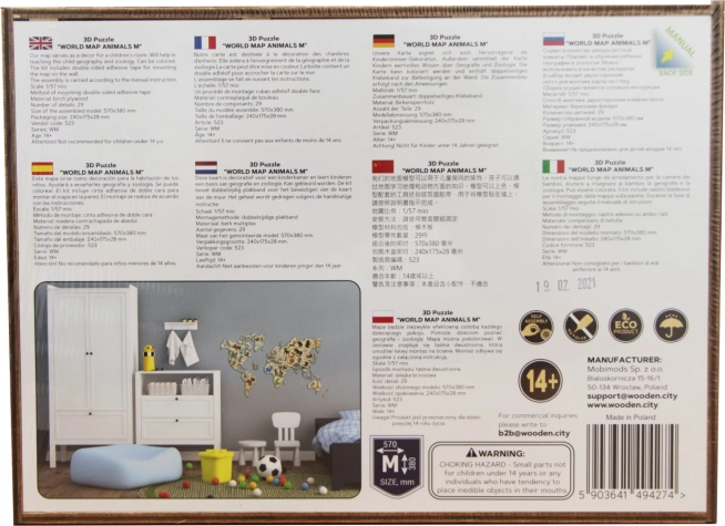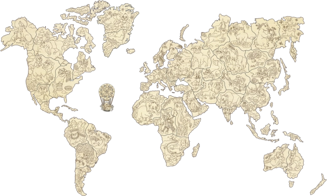 Scopri il mondo in modo giocoso. La mappa in legno con animali in scala 1:57 milioni è tagliata al laser con grande precisione dal compensato di betulla, distinguendosi per linee pulite e venature naturali del legno. È perfetta sia come decorazione sia come supporto didattico: i bambini ampliano in modo divertente la conoscenza di continenti, oceani e animali.