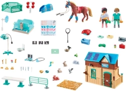 Benvenuti nel pittoresco ranch Waterfall, dove un gruppo di amici si prende cura dei propri cavalli e aiuta persone e animali. Questo set PLAYMOBIL, ricco di dettagli, offre un ambiente realistico di ippoterapia e clinica veterinaria con aquatrainer, che può essere riempito d'acqua per una riabilitazione delicata dei cavalli infortunati. La giovane veterinaria Harleen si prende cura di gattini e cavie, mentre il terapista equino Phil esegue visite e interventi.