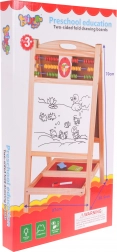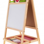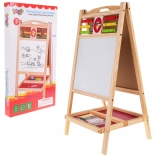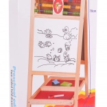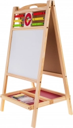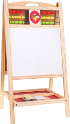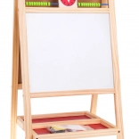 La lavagna doppia in legno con abaco è un fantastico gioco educativo per bambini dai 3 anni. Questa lavagna multifunzionale ha un lato bianco magnetico e l’altro per il gesso. Sul lato bianco si può scrivere con il pennarello incluso nella confezione. Il pennarello è magnetico e dotato di gomma per cancellare. Nella parte superiore della lavagna sono posizionati un abaco e un orologio con lancette mobili. Sul lato per il gesso si può disegnare con i gessetti inclusi e poi cancellare tutto con la spugna.