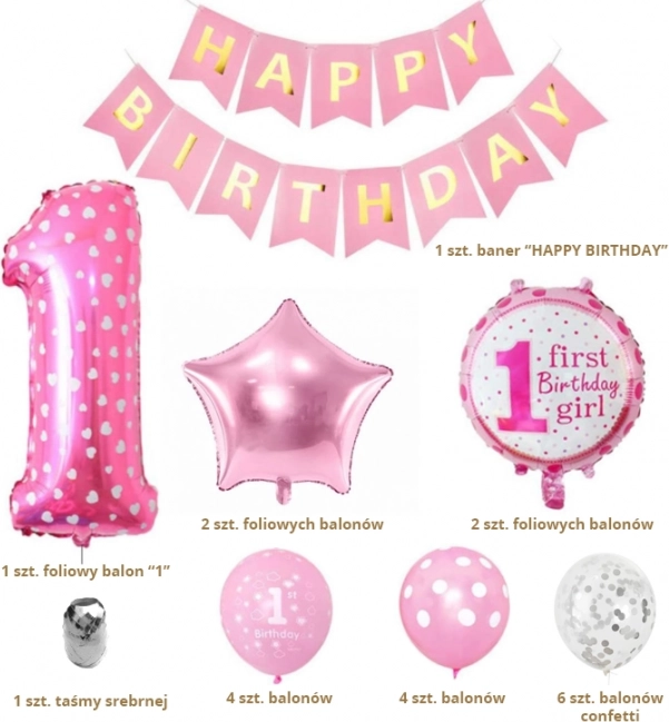 Set di palloncini di compleanno per la festa di una bambina - rosa