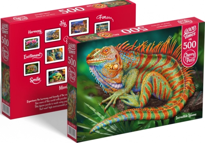 Divertiti con il puzzle Cherry Pazzi con il motivo dell'incredibile iguana. Questo puzzle dai colori vivaci di 500 pezzi è ideale per il relax e il divertimento per tutta la famiglia.