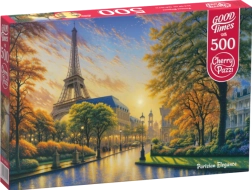 Il puzzle rappresenta un dettaglio della Torre Eiffel a Parigi durante un tramonto dorato, creando un'atmosfera romantica.