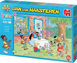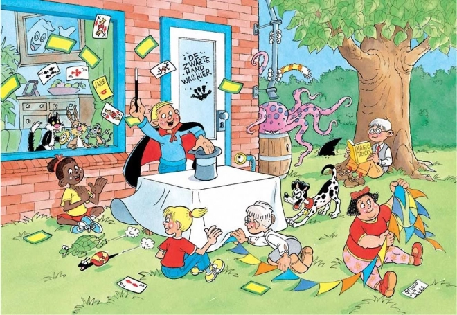 Scopri un divertente puzzle per tutta la famiglia con l’illustrazione del leggendario caricaturista JAN VAN HAASTEREN. Il set include 240 pezzi ed è ricco di dettagli umoristici che garantiscono ore di fantastico divertimento. Troverai la tipica pinna di squalo, mani misteriose e altri motivi nascosti – tutto a tema Mago. Ideale per i più giovani e per il montaggio insieme ai genitori.