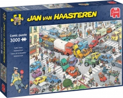 Scopri il mondo delle illustrazioni spiritose di Jan van Haasteren: colorato, dinamico e curato fin nei minimi dettagli. Il soggetto Caos del traffico è ricco di gag, situazioni capovolte e sorprese che ti faranno sorridere a ogni nuova occhiata. Con 3000 pezzi è una sfida perfetta per i puzzlisti più esperti o come progetto per tutta la famiglia.