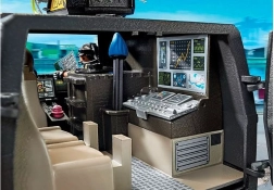 Sul tetto del veicolo c’è una torretta da cui è possibile lanciare un rampino o una freccia d’acqua. Questo set riccamente accessoriato, con effetti luminosi e sonori, offre divertimento duraturo ed è l’aggiunta ideale per tutti i fan della polizia PLAYMOBIL.