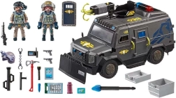 Questo fuoristrada dell’unità speciale è il sogno di ogni piccolo poliziotto. Nessun criminale potrà fuggire grazie alle sospensioni su tutte le ruote, capaci di affrontare anche i terreni più difficili. Se la strada è bloccata, entra in azione il vomere sul paraurti anteriore. Il tetto, così come le portiere laterali e posteriori, sono apribili per posizionare facilmente le figure all’interno.