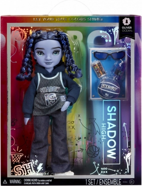 Questa bambola Shadow High con carnagione blu e capelli intrecciati è vestita con abbigliamento sportivo con il numero '19' e appartiene alla collezione di tendenza 'Oliver Ocean'. È un regalo ideale per i bambini dai 6 anni che amano il gioco creativo e i personaggi alla moda.
