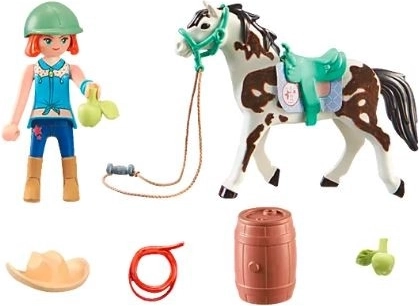 - Il set adorabilmente progettato include una figura PLAYMOBIL di Ellie, il cavallo Sawdust, una sella, una briglia, un lazo e molti altri accessori per l'equitazione western e la cura dei cavalli.