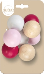 Otto palline mobili multicolori collegate su un cordoncino. Aiutano a sviluppare la motricità fine delle mani e sono adatte per bambini a partire da 6 mesi. Il prodotto soddisfa i requisiti di sicurezza per i giocattoli dell'UE.