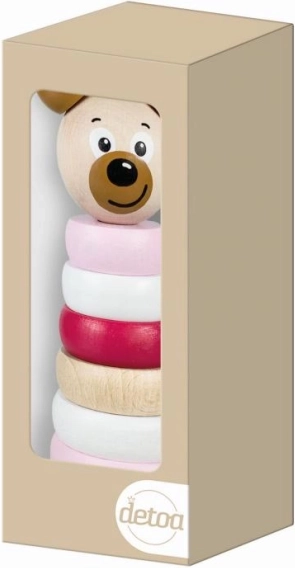 La piramide in legno con testa d'orso nei colori pastello è più di un semplice giocattolo — è uno strumento di sviluppo per i bambini. È realizzata in legno massiccio, il che garantisce la sua resistenza e lunga durata. Si compone di otto pezzi che insegnano ai bambini a riconoscere colori e forme. Ha un design ergonomico con forme circolari e bordi arrotondati, adattato per le piccole mani dei bambini e stimola il tatto.