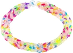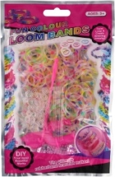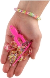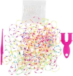 Include tutto il necessario per la realizzazione dei braccialetti - 200 elastici arcobaleno, uncinetto e chiusure.