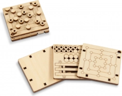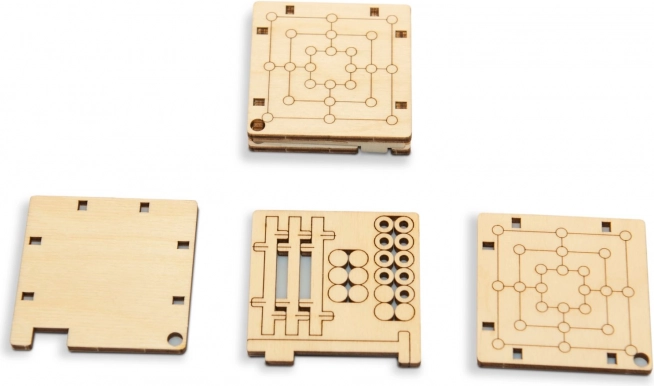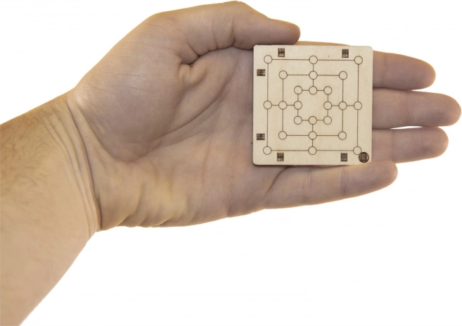 Il piccolo tabellone in legno entra nel palmo della mano e in tasca. Ideale per viaggi, scuola o lavoro – una partita veloce ogni volta che hai un momento libero.