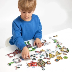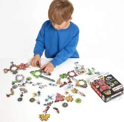 Scopri il puzzle creativo a tema robot con 63 robusti pezzi in cartone, di cui 28 stampati su entrambi i lati. I pezzi si possono combinare liberamente tra loro, così i bambini assemblano fino a 8 grandi robot e poi ne cambiano aspetto e funzioni senza limiti. Il gioco sviluppa motricità fine, pensiero logico, creatività e pazienza – un divertimento ideale per i prescolari interessati a tecnologia e invenzioni.