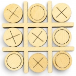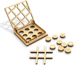 Il montaggio è senza colla e strumenti, i pezzi si incastrano con precisione. È inclusa una pratica scatolina per non perdere nessuna X o O. Puoi lasciare il gioco al naturale o colorarlo con pennarelli o vernici secondo il tuo stile.