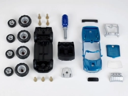Il set permette di smontare il veicolo in telaio, ruote e carrozzeria e di rimontarlo. Ideale per sviluppare motricità fine e logica.