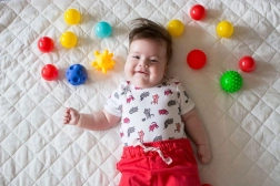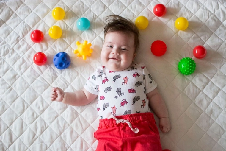 Usatele per l’esplorazione libera, i primi tentativi di passarle da una mano all’altra, l’allenamento di rotolamento e lancio e per un delicato massaggio rilassante di pancino, schiena o pianta dei piedi. Le texture variegate aiutano il cervello a elaborare correttamente gli stimoli tattili e offrono ai bambini un effetto calmante durante il gioco e prima di addormentarsi.