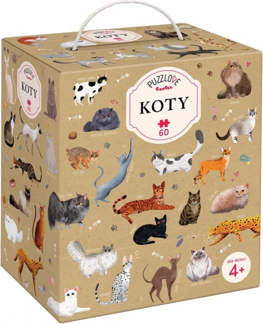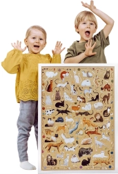 Miao, miao! Gatti divertenti e misteriosi invitano i bambini a giocare con i grandi puzzle da 60 pezzi, che presentano gatti di diverse razze. Allena pazienza e capacità di osservazione con questa fantastica motivazione ad attività divertenti. CzuCzu sa quanto sia coinvolgente la gioia di comporre i puzzle!