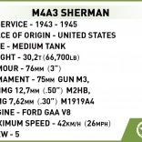 Il modello a blocchi dello Sherman è dettagliatamente modellato e include vari accessori del carro originale. Particolare attenzione merita la figura ben realizzata del comandante del carro. Sul carro si trova anche una targhetta con il nome stampato.