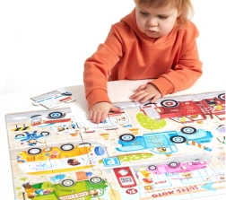 Brum, brum – allacciate le cinture, si parte! Il puzzle CzuCzu Moto Auto entusiasmerà ogni piccolo fan delle strade e delle macchine. Il grande puzzle da 40 pezzi presenta diverse auto, camion e mezzi da lavoro in movimento, così i bambini troveranno facilmente il loro preferito.