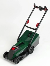 Il realistico tosaerba per bambini in colore verde scuro con modulo luminoso e sonoro Bosch farà felici i piccoli giardinieri. Premendo il pulsante si illumina il logo BOSCH e si sentono suoni autentici del motore e del taglio. Grazie al basso peso, al cestino rimovibile e alle ruote mobili è ideale per giocare in casa e in giardino.