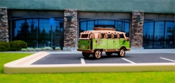Le aperture autentiche di finestrini, porte e ruote donano al minibus un look vintage unico. Perfetto come decorazione e pezzo da collezione.
