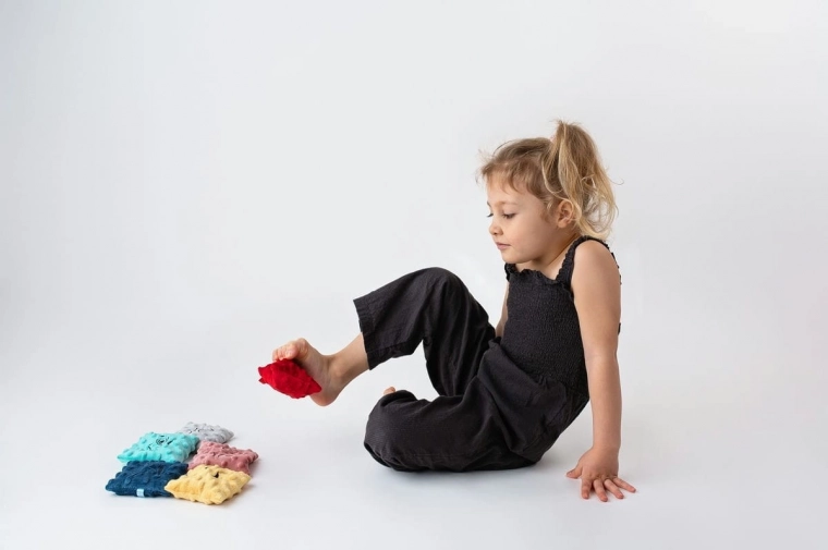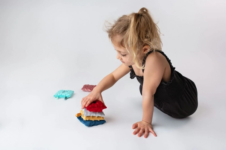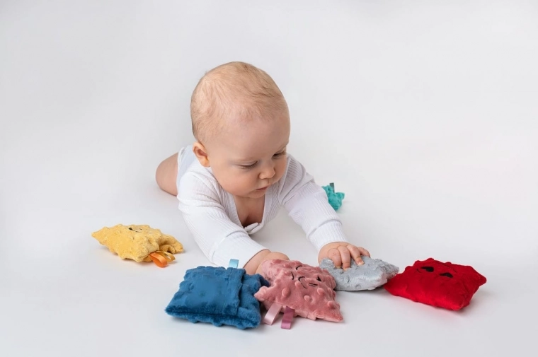 Il set comprende 6 sacchetti colorati con trame e imbottiture differenti: grano saraceno con lavanda, piselli, riso, miglio, semi di lino e noccioli di ciliegia. Ogni sacchetto offre stimoli tattili diversi che favoriscono l’integrazione sensoriale e la naturale curiosità del bambino. I morbidi rivestimenti removibili sono lavabili, gli inserti interni possono essere puliti con un panno umido; per mantenere l’igiene è possibile riporli di tanto in tanto nel congelatore.