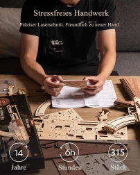Questo puzzle meccanico 3D in legno in scala 0,8:1 offre un’esperienza di costruzione realistica e un aspetto autentico. I pezzi sono tagliati al laser con precisione, si incastrano perfettamente e non serve alcuna colla. Una volta montato, ti divertiranno gli elementi mobili e la possibilità di giocare in sicurezza con il tiro di elastici sui bersagli inclusi.