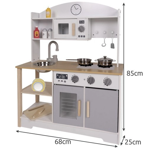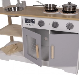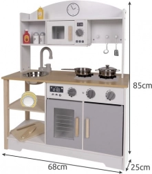 IN LEGNO - la cucina è realizzata in legno di alta qualità, il che influisce significativamente sulla durata d’uso e sulla sicurezza e salute dei più piccoli. È un design senza tempo che piacerà a ogni bimbo. Grazie al suo stile classico è sempre stata molto apprezzata. L’eccezionale cura costruttiva insieme all’estetica e all’attenzione ai minimi dettagli conferisce valore aggiunto al prodotto ed è piacevole alla vista. La cucina può svolgere anche una funzione decorativa ed essere un ornamento della cameretta.