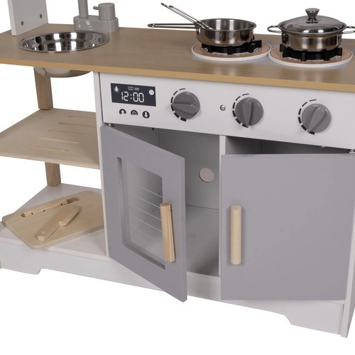 OROLOGIO ANALOGICO + Effetti sonori - l’orologio analogico è posizionato all’altezza degli occhi del bambino, le lancette sono mobili così che possa imparare a leggere l’ora; i bruciatori della cucina e del microonde fanno clic quando si girano le manopole! Il tuo bambino sarà entusiasta: la cucina garantisce ore di gioco spensierato.