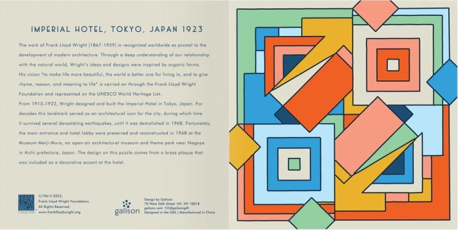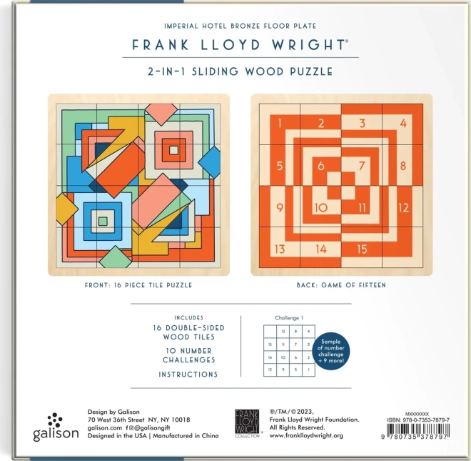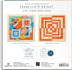 Scoprite l’estetica senza tempo dell’architetto FRANK LLOYD WRIGHT in un intelligente gioco da tavolo. Questo puzzle scorrevole in legno con motivo ispirato al disegno del pavimento dell’Hotel Imperial combina un design visivamente d’impatto con una sfida logica. Da un lato componete il motivo spostando con precisione i pezzi, dall’altro potete giocare al classico Gioco del quindici con difficoltà regolabile.