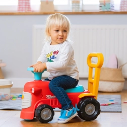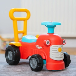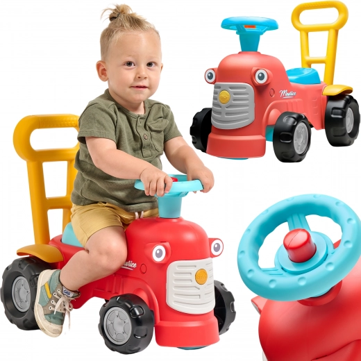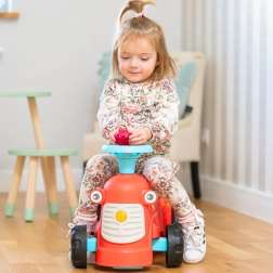 Maurice offre un'ottima opportunità per i bambini di apprendere nuove abilità in modo giocoso. Il trattorino è equipaggiato con un piccolo pulsante sonoro e un clacson sul volante, che stimolano le abilità motorie e l'ascolto del bambino. Guidare il trattorino, giocare con il volante e manovrare con le ruote girevoli aiutano i bambini a esercitare la coordinazione e l'equilibrio.