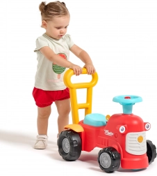 Stando in piedi dietro il trattorino, i bambini possono utilizzare le impugnature ergonomiche per imparare a camminare in modo giocoso e sicuro. Sotto il sedile c'è un piccolo spazio di stivaggio per i tesori.
