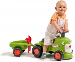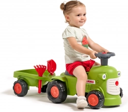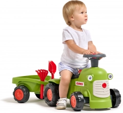 Scoprite un robusto spingi-spingi dal design del noto marchio agricolo CLAAS in verde chiaro. I bambini ameranno la facilità di guida grazie al volante con clacson e i genitori apprezzeranno la struttura sicura e stabile. Il rimorchio offre spazio per i giocattoli ed è dotato di pratici accessori – rastrellino e paletta.