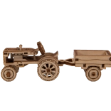 Il modello di trattore con rimorchio ha ruote mobili e ricchi dettagli incisi. Il rimorchio è inclinabile – ideale come scenografica decorazione in legno.