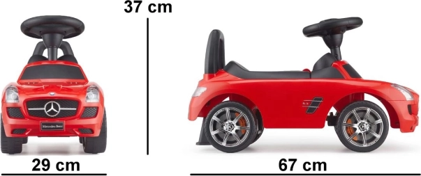 Il cavalcabile ispirato al leggendario modello MERCEDES‑BENZ SLS AMG è stato progettato con attenzione ai dettagli e al comfort dei piccoli piloti. La forma aerodinamica, la costruzione robusta e la maneggevolezza semplice regalano tanta gioia di guida, mentre lo schienale e la struttura stabile aiutano a mantenere una corretta postura di seduta.