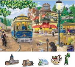 Questo puzzle in legno premium offre una scena vivace con un tram rétro e una via ricca di dettagli d’epoca. Grazie ai pezzi tagliati al laser con bordi lisci, il montaggio è allo stesso tempo un piacere e una sfida. Il design bifacciale consente di comporre dal lato frontale seguendo il motivo oppure dal retro secondo il motivo ripetuto.