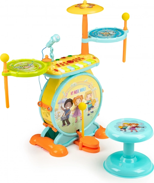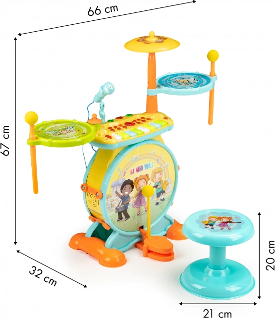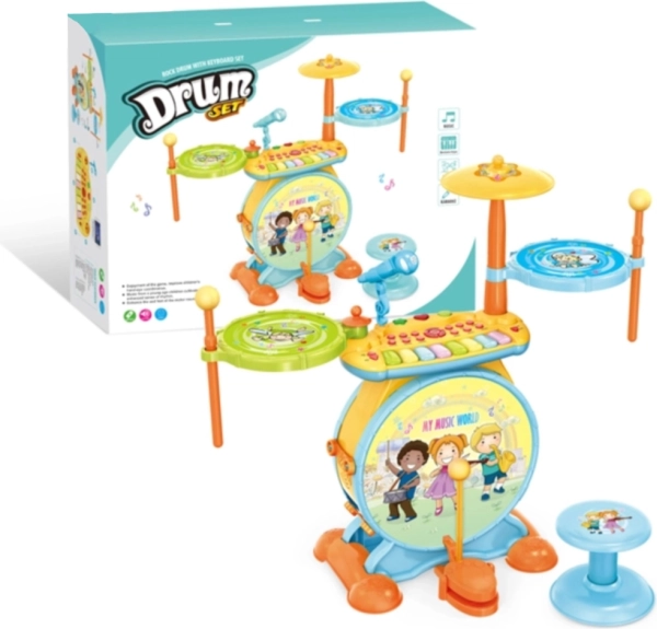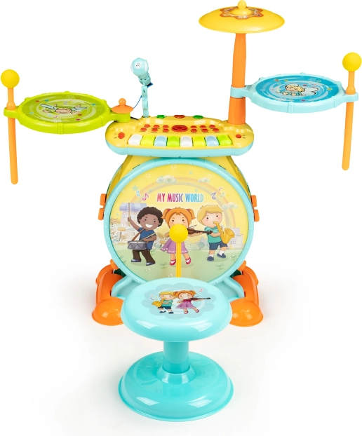Permetti ai tuoi bambini di entrare nel mondo delle melodie e di comporre le proprie canzoni con questo straordinario set musicale. La batteria per bambini ha l’aspetto di un vero strumento musicale ed è dotata di sgabello per un suonare confortevole. I bambini saranno entusiasti delle possibilità offerte da questo set, inclusi il karaoke e il collegamento al telefono o al lettore mp3.