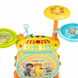 La batteria e tastiera 2 in 1 sono progettate per imitare diversi suoni di strumenti e includono diverse melodie preimpostate. I bambini possono quindi non solo ascoltare, ma anche aggiungere la propria colonna sonora utilizzando tastiera e percussioni. La possibilità di collegamento al telefono consente di riprodurre i brani preferiti o di divertirsi con il karaoke collegando il microfono.