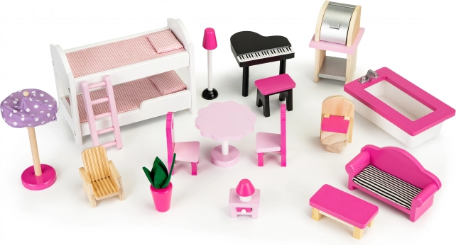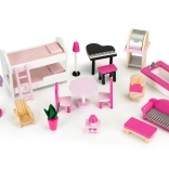La confezione include anche un set di 16 pezzi di mobili, che comprende un lettino, un pianoforte, un divano e molti altri dettagli che offrono ai bambini spazio per il gioco di ruolo creativo e lo sviluppo delle abilità manuali.