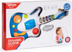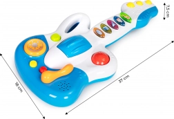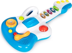 La chitarra è dotata di 5 pulsanti colorati, ognuno con un suono o una melodia diversa. Un'altra funzione attraente è la sfera rotante, che funziona come un sonaglio.