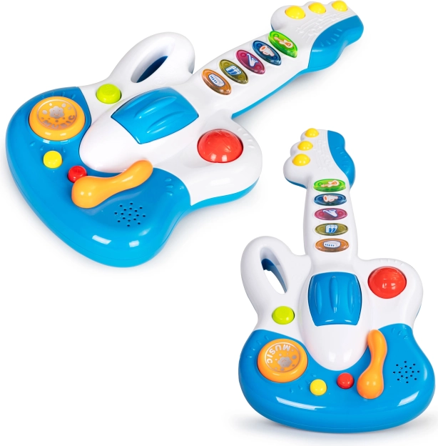 La chitarra elettrica aiuta i bambini a sviluppare l'udito e le capacità motorie attraverso un gioco musicale interattivo.