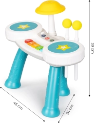 Questo pianoforte e tamburi per bambini 2 in 1 è lo strumento ideale per lo sviluppo delle capacità musicali dei bambini. Suonare questo strumento non solo migliora la coordinazione motoria, ma sviluppa anche la capacità di ascoltare e distinguere diversi suoni. È una grande opportunità per il tuo bambino di iniziare ad apprendere i principi di base del ritmo e della melodia. Diventerai parte del mondo musicale fin dalla giovane età.