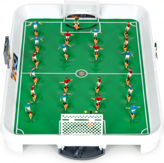 Acquista il mini calcio balilla che delizierà ogni fan di calcio. Questo calcio balilla è progettato per un gioco dinamico e veloce che simula una vera partita di calcio. Gli autentici adesivi con le bandiere nazionali permettono di creare tornei internazionali per bambini.