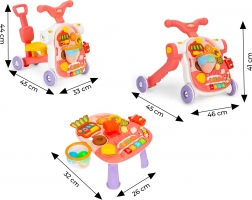 - Opzioni 4in1: pusher, cavalcabile, scooter, tavolo educativo