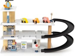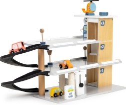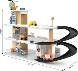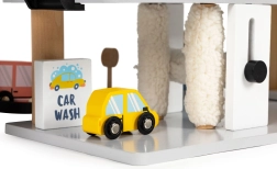 Il garage è realizzato in legno resistente con bordi lisci e sicuri. I ricchi accessori, tra cui autolavaggio e stazione di servizio, alimentano la fantasia dei bambini e prolungano il tempo di gioco. Regalo ideale dai 3 anni in su, favorisce lo sviluppo della motricità, la coordinazione e il pensiero logico.