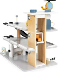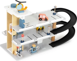 Tre livelli di parcheggio, rampe e una piattaforma sul tetto per l’atterraggio dell’elicottero offrono infiniti scenari di gioco e apprendimenti delle situazioni stradali.