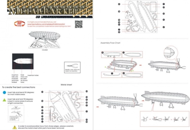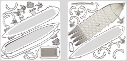 La confezione contiene due lastre di acciaio con pezzi tagliati con incisione laser e istruzioni per l'assemblaggio. Gli strumenti non sono inclusi nella confezione. Per assemblare i pezzi avrete bisogno di piccole tronchesi e pinze sottili. Consigliato per modellisti di età maggiore di 14 anni.