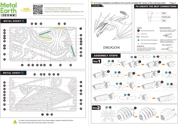 Sfida entusiasmante, piacere nel montaggio e risultato mozzafiato: ecco i modelli METAL EARTH! Il modello della linea premium ICONX Game of Thrones ti conquisterà con una lavorazione dei dettagli ancora più perfetta! Assemblare il puzzle 3D METAL EARTH ICONX richiede pazienza e manualità. Il risultato ripagherà pienamente lo sforzo investito! Le miniature sono una decorazione particolarmente suggestiva e accattivante non solo a casa, ma anche in ufficio o a scuola. Da sottili lastre rettangolari di acciaio (21 x 11 cm) con parti di monumenti mondiali, famosi mezzi di trasporto, strumenti musicali o animali, prenderanno forma tra le tue mani modelli affascinanti e ricchi di dettagli. L’aspetto autentico dei puzzle 3D METAL EARTH ICONX è ottenuto grazie all’incisione laser di alta precisione. La confezione include 2 lastre d’acciaio e le istruzioni di montaggio. Gli attrezzi non sono inclusi. PROCEDURA DI LAVORO: Rimuovi i singoli pezzi dalle lastre metalliche; se necessario, usa piccole tronchesine (non incluse). I pezzi si collegano tramite fermi costituiti da una linguetta e un foro. Piega la linguetta con piccole pinze a becchi fini (non incluse) e collega progressivamente tutti i fermi fino a ottenere un capolavoro estremamente realistico! Età consigliata: dai 14 anni. Dimensioni del puzzle assemblato: ca. 21 x 19 x 4 cm
