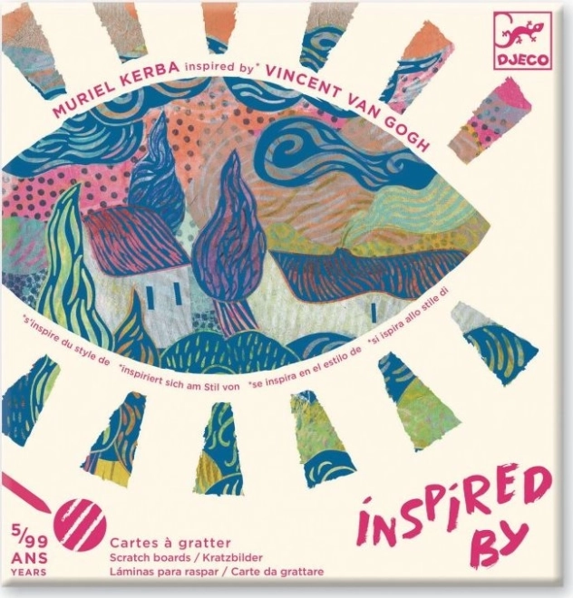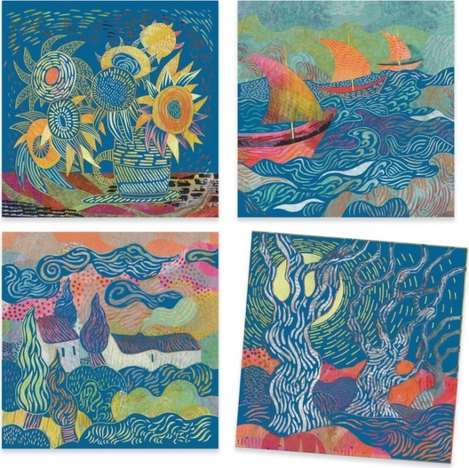 Set di design di popolari immagini da grattare ispirate al celebre artista Vincent Van Gogh.